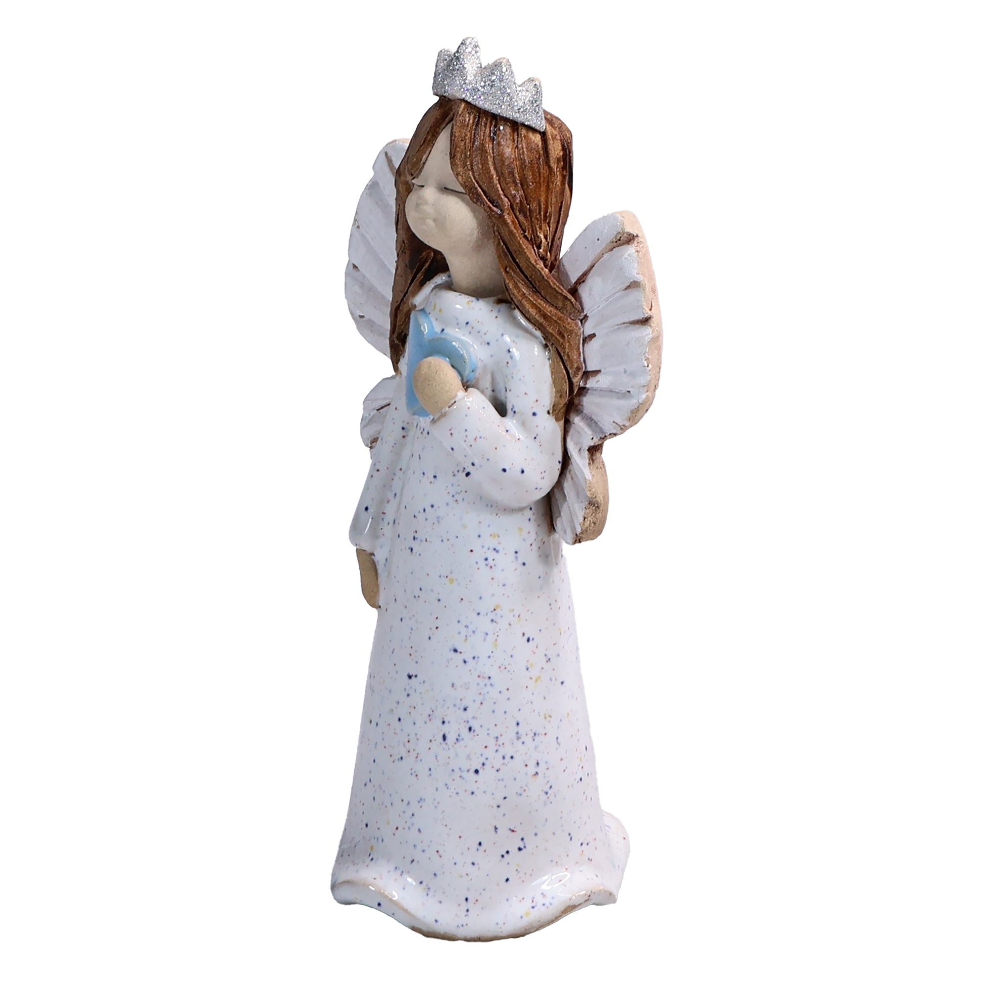 Celebrate birthdays with our enchanting Handmade Ceramic Birthday Angels with Heart and Crown, a delightful addition to any special occasion. Each angel figurine is meticulously handcrafted by skilled artisans, ensuring a unique and high-quality creation. Available in various colours, these birthday angels add a touch of charm and elegance to any home decor or birthday celebration. The intricate details and smooth finish highlight the artisan's dedication to craftsmanship and creativity. Each angel holds a heart and wears a crown, symbolising love and celebration. Ideal for birthday gifts, party decorations, and collectors, these birthday angels bring a sense of joy and festivity to any setting. They also make a thoughtful and unique gift for loved ones, celebrating the beauty and significance of birthdays. Whether displayed on a shelf, mantel, or as part of a curated collection, our Handmade Ceramic Birthday Angels with Heart and Crown will captivate and inspire all who see them. Embrace the artistry of handmade craftsmanship with these delightful pieces, and let them remind you of the magic and joy that birthdays bring.
