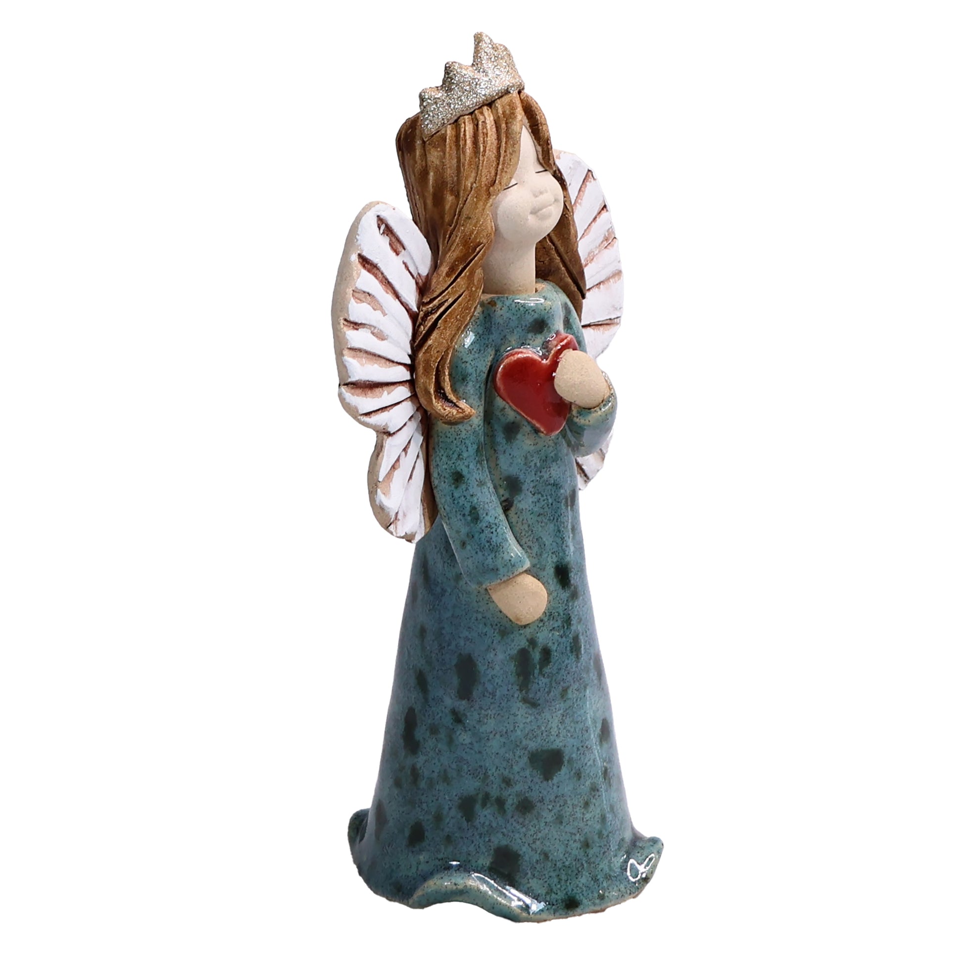 Handmade Ceramic Birthday Angels with Heart and Crown