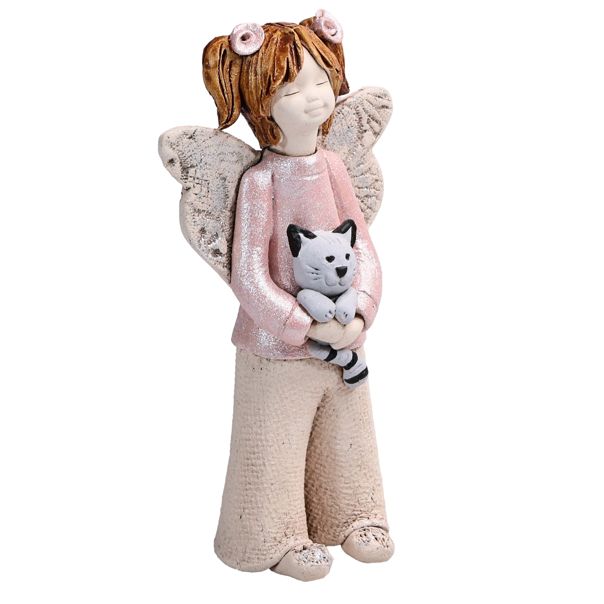 Handmade Rustic Natural Beige Ceramic Child Angel Holding Cat