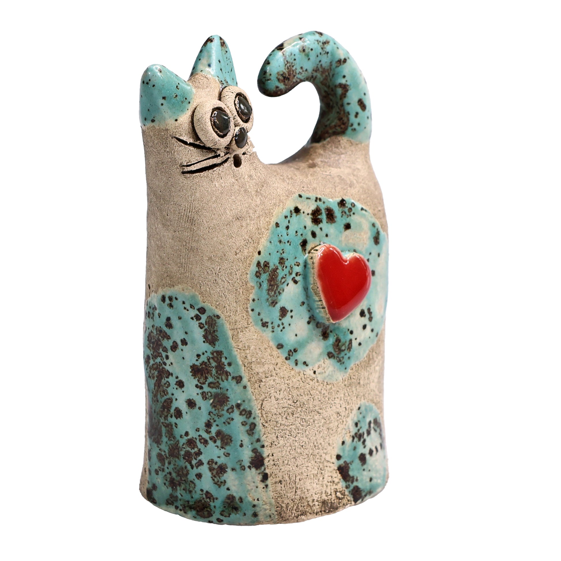 Handmade Ceramic Love Cat Figurine with Heart
