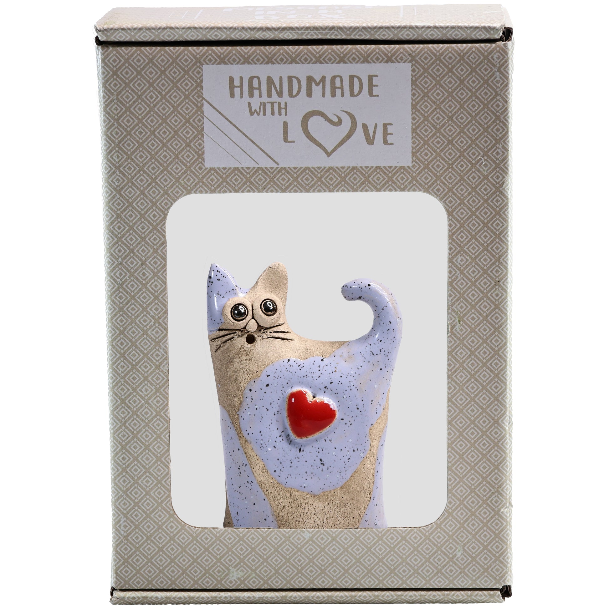 Add a touch of charm to your home with this adorable handmade Love Cat figurine, crafted from high-quality ceramic. Each Love Cat holds a delicate heart, symbolising affection and warmth, making it a perfect gift for cat lovers or a delightful addition to your décor. With a variety of colours available, this ceramic figure can match any interior style, whether placed on a shelf, mantelpiece, or desk. Its intricate detailing and smooth finish reflect expert craftsmanship. Whether for yourself or a loved one, the Love Cat brings joy, love, and a heartwarming presence to any space.