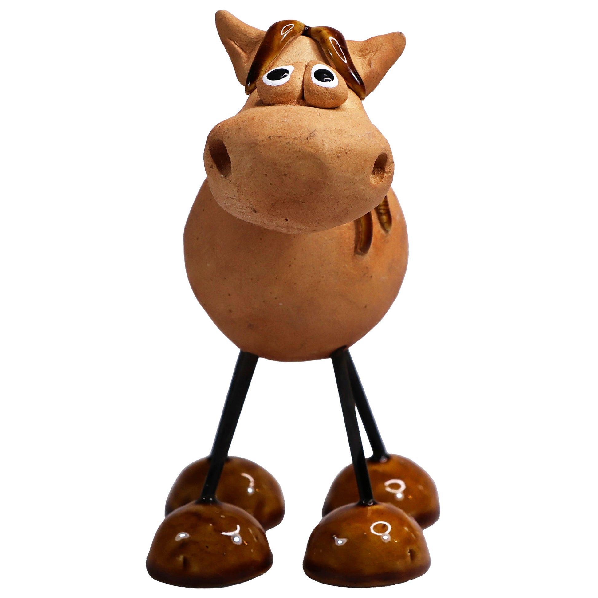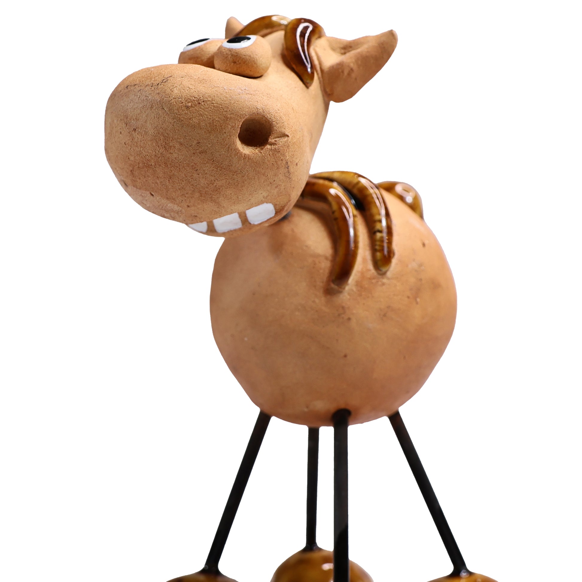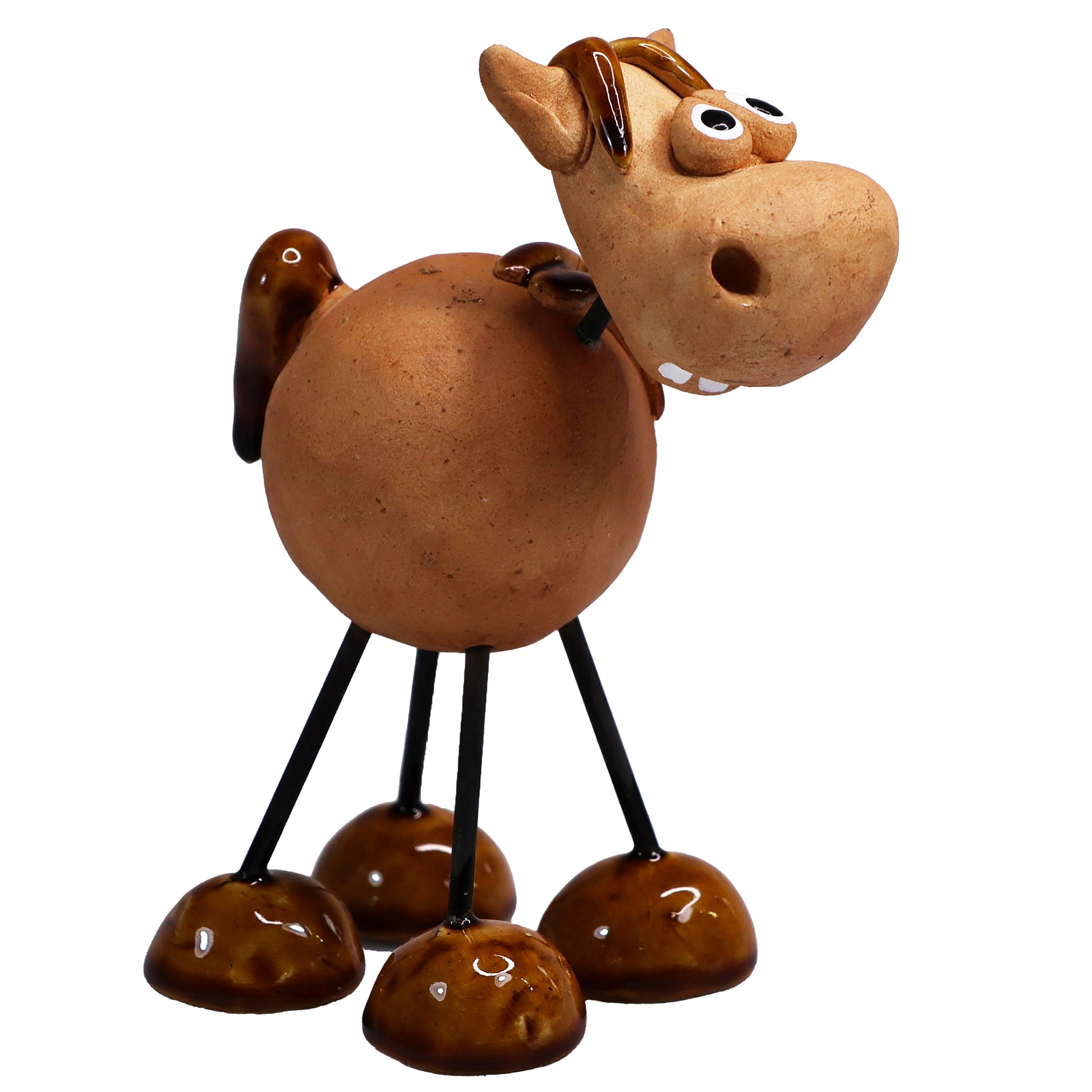 Handmade Laughing Brown Ceramic Wire Leg Horse